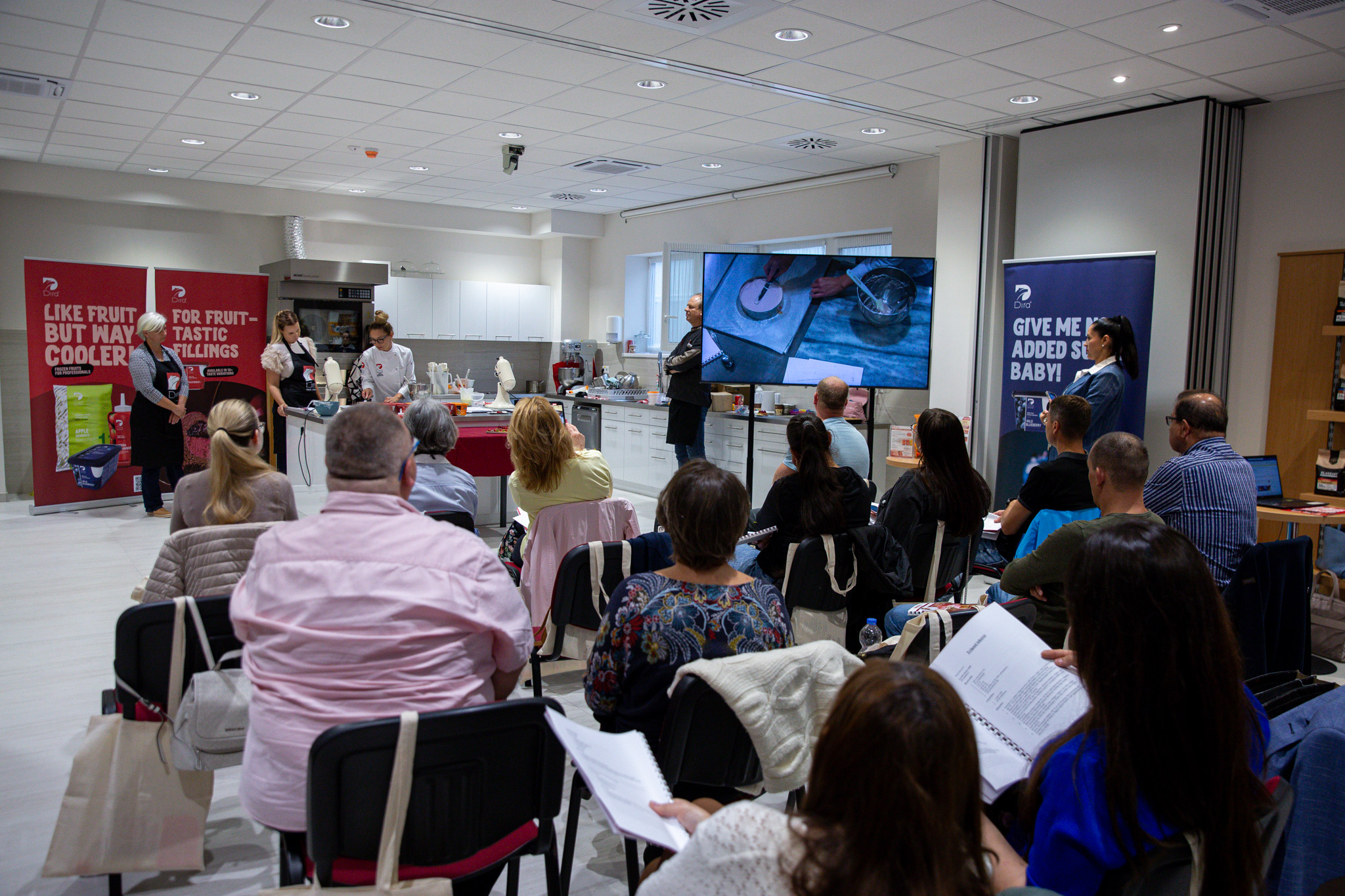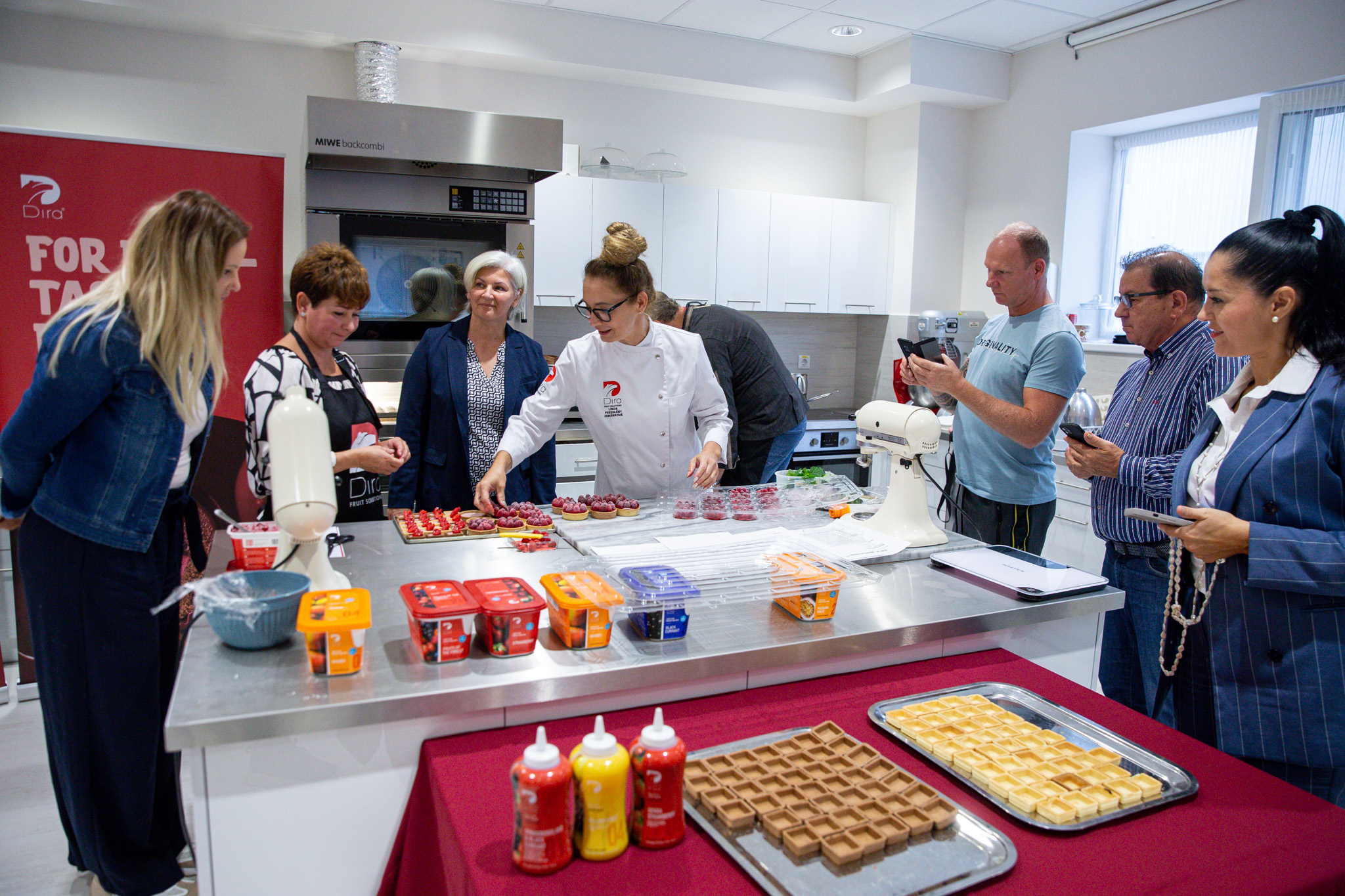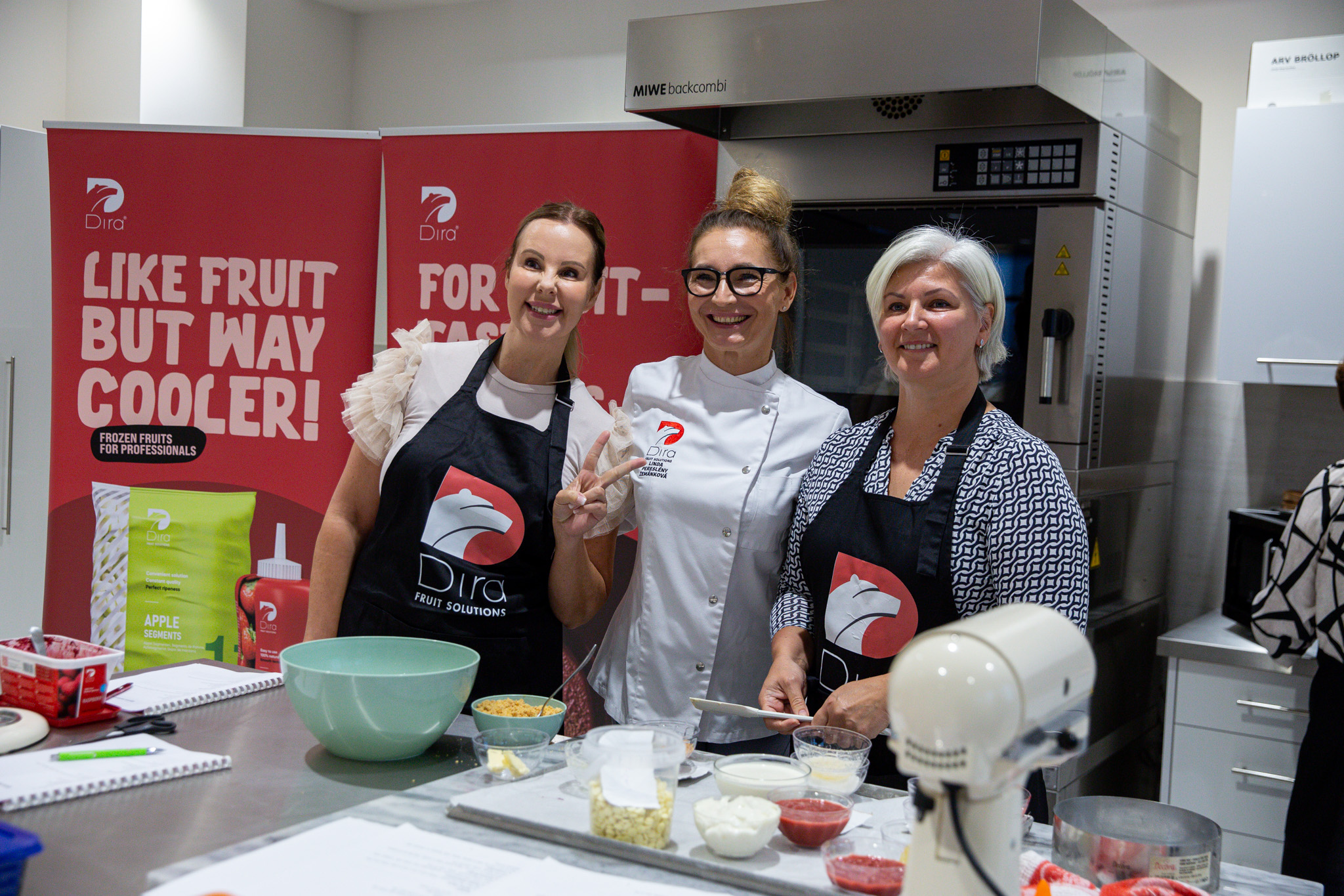 A bemutatót a Szlovákiából érkezett, elismert mestercukrász, Linda Pereslény Zemánková vezette, aki szakértelmével és ötletes megoldásaival különféle gyümölcsalapú desszerteket készített – a mousse-októl kezdve a könnyű krémeken át a zselékig. A Dira fagyasztott pürék intenzív gyümölcsíze tökéletesen érvényesült minden kompozícióban és párosításban.