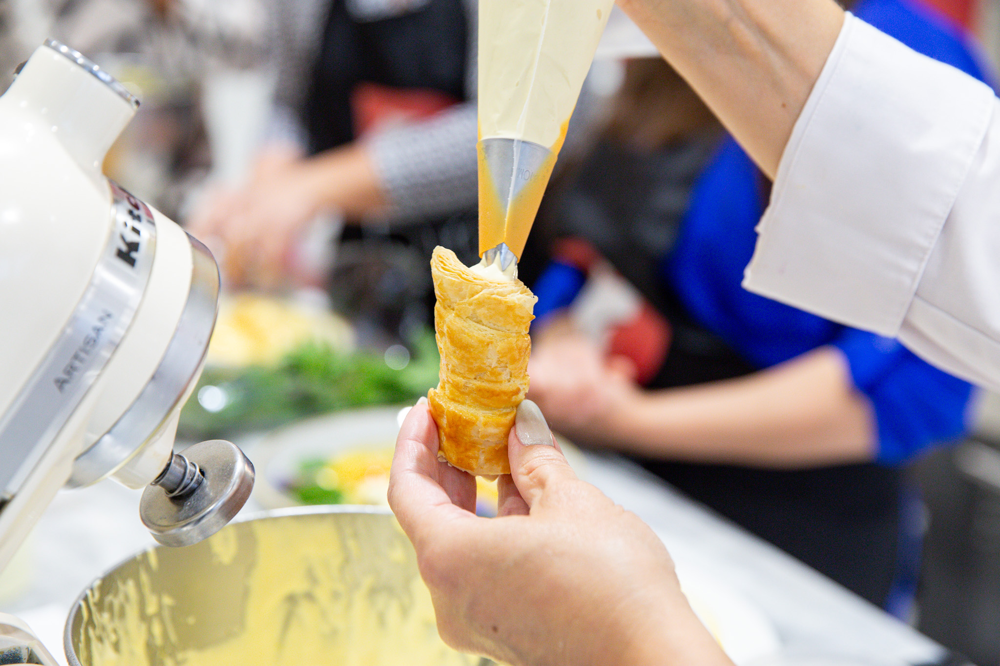 A rendezvény hangulatát tovább fokozta, hogy a jelen lévő cukrászok is bekapcsolódhattak a munkafolyamatokba. A közös alkotás, a kötetlen eszmecsere és az új ötletek kipróbálása egyfajta mini workshopként működött, ahol fontos volt az inspiráció: a meglévő alapanyagokat és recepteket a résztvevők tovább alakíthatják a saját és vásárlóik igényeinek megfelelően.