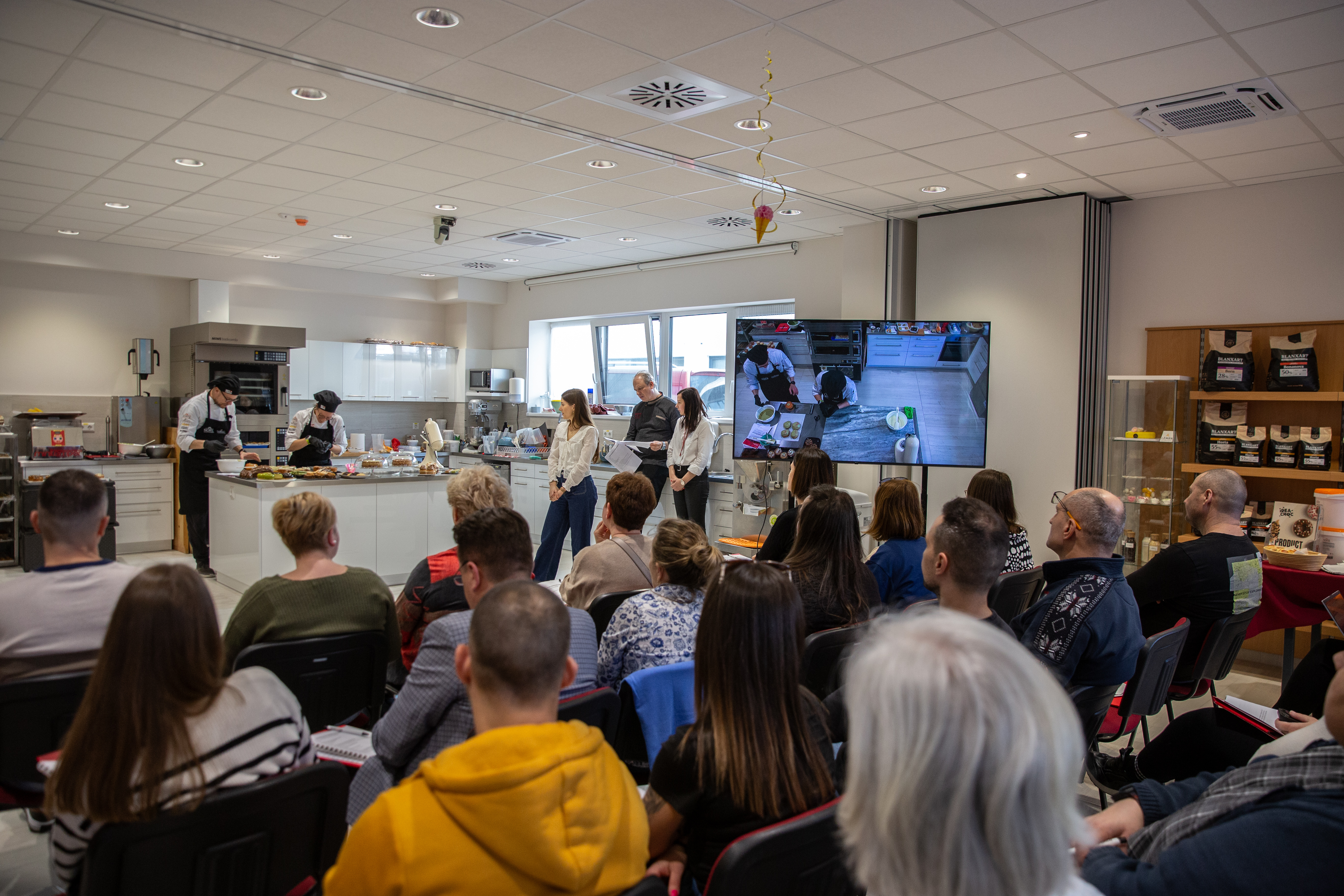 A bemutató során partnereink részletesen megismerhették a Norte krémeket és bevonókat, valamint azt, hogy ezek a termékek mennyire változatos módon alkalmazhatóak a cukrász- és pékipar számára. A gyakorlati példák inspirációt adtak arra hányféleképpen lehet használni a Crema Velákat, Les Cremes krémeket és a Zafiro bevonókat, miközben a résztvevők hasznos technológiai tippeket is kaptak a mindennapi munkájukhoz.